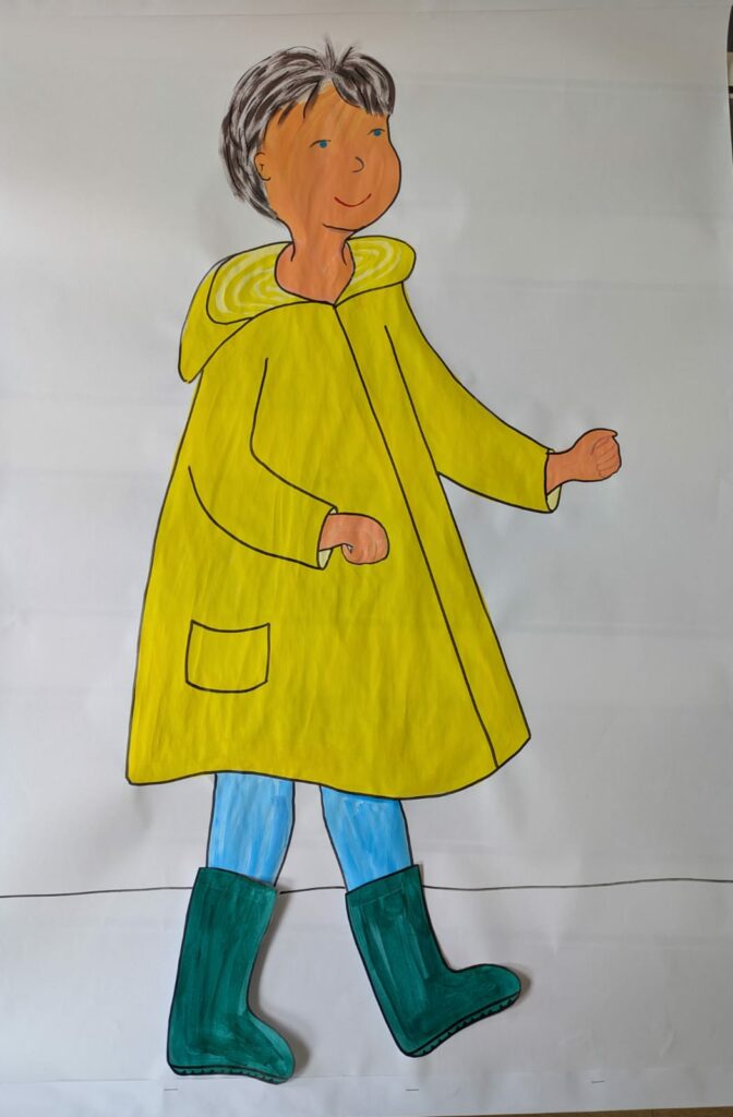 Notre pèlerin a mis des bottes et nous sommes aussi invités à mettre de bonnes chaussures pour marcher sur tous nos chemins de vie, pour mieux nous accueillir et pour nous convertir c’est-à-dire nous tourner vers Dieu.