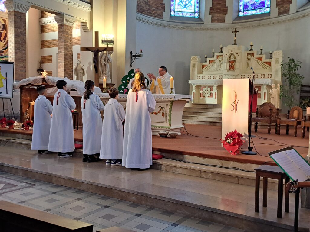 Les mages ont rejoint notre crèche au cours de la lecture de l’Evangile lors de la messe dominicale à laquelle nos 5 fidèles servants d’autel étaient présents :