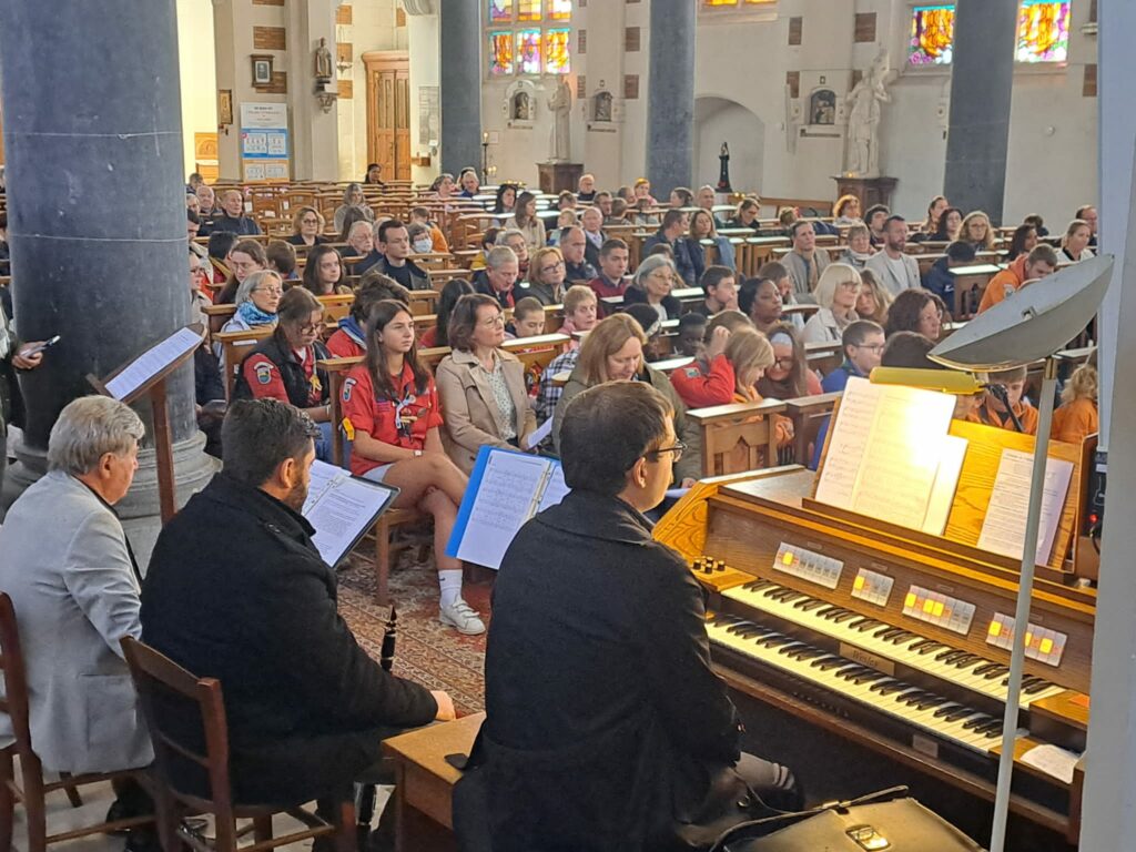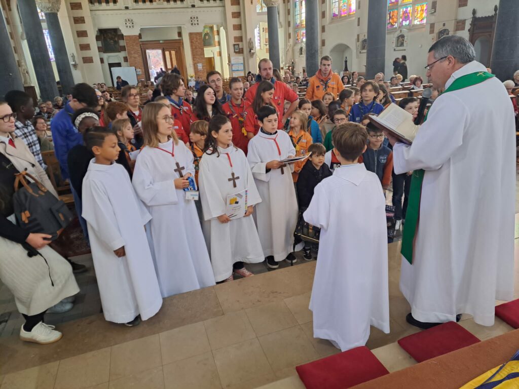 Le Dimanche 28 septembre c était la messe de rentrée de la paroisse, des enfants du KT, des scouts…une belle assemblée, une belle célébration avec bénédiction des cartables , des sacs d ecole, des agendas, des doudous…. et le verre de l amitié à la sortie offert par les scouts.